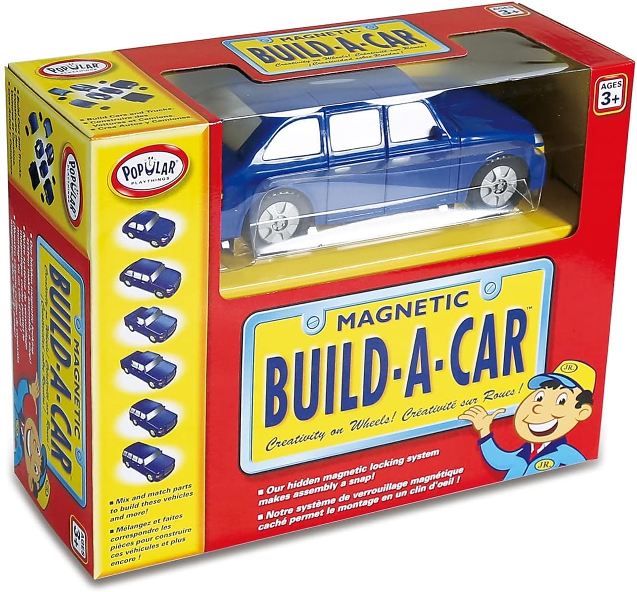 Build-a-Car comes with 11 pieces that allow you to build a coup, SUV, pickup truck and more. The secret lies in the hidden magnetic locking system that makes assembling your vehicle a snap. Once you've built your vehicle, you can roll it down the hall or across the table. Want to add an extended cab, or build a car instead of a truck? No problem. The magnets make it easy to pull the vehicle apart, and build another one. It's creativity on the wheels, for children ages 3 and over. Popular Playthings provides award-winning toys that encourage learning, creativity, social interaction, and good old basic fun.