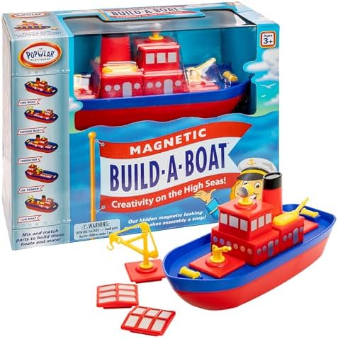 MAGNETIC TOYS FOR KIDS: Oversized boat pieces are designed with the youngest builders in mind. Chunky, colorful parts are fun & easy to snap together & take apart. Ideal for kids ages 3 years & up.