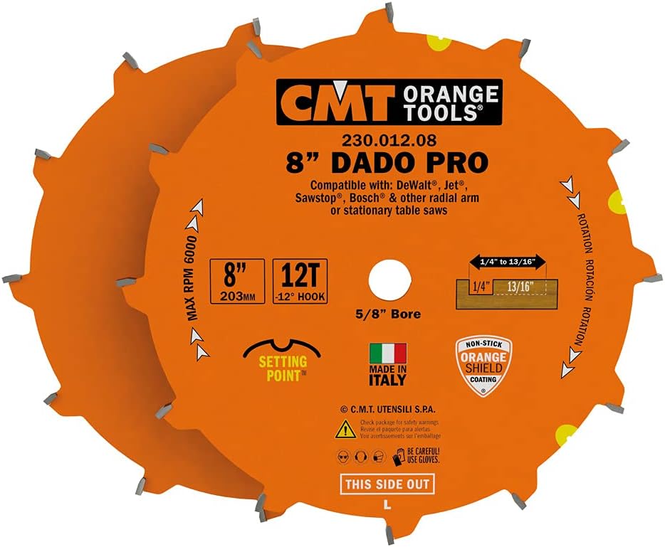 CMT 230.012.08 Dado Pro Set, 8-Inch x 12 Teeth FTG+ATB Grind with 5/8-Inch Bore