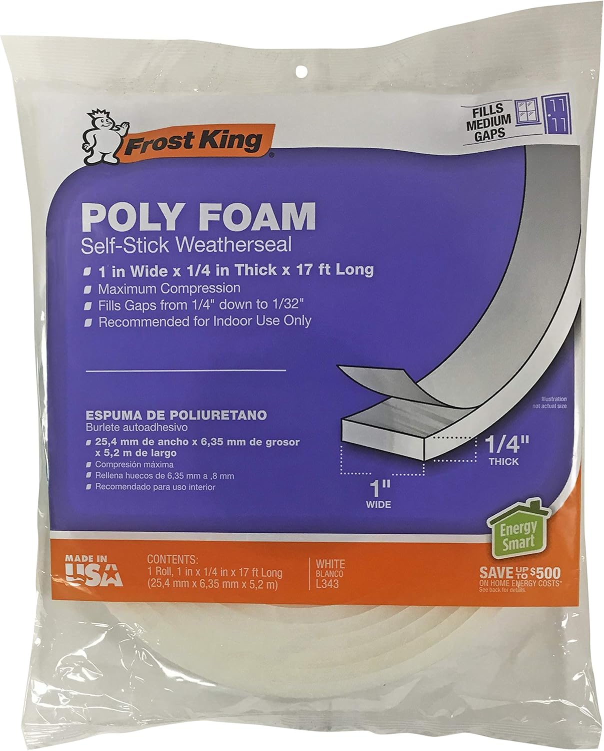 Frost King L343 Poly Foam Tape-Open Cell-Maximum Compression, L343-1, 17ft L, White-1/4 Thick, 1" W, 1/4" T, White
