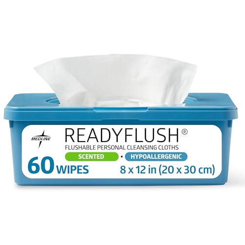 Medline ReadyFlush Flushable Wipes (60 Wipes per Tub), Scented, Biodegradable Flushable Incontinence Wet Wipes for Adults with Aloe, Hypoallergenic & pH-Balanced Personal Cleansing Cloths