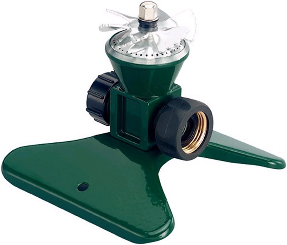 The Orbit Cyclone II Rotating Sprinkler is ideal for watering small- to medium-sized areas. The sprinkler sprays up to 40 ft. in diameter, covering up to 1,250 sq. ft. with a gentle, rain-like spray. Made from corrosion-resistant material with a coated finish, this sprinkler will last season after season. A hole in the base allows you to add stability with the use of a stake (sold separately). The swivel connection makes for easy hose attachment. Connect multiple sprinklers together to increase the coverage area.