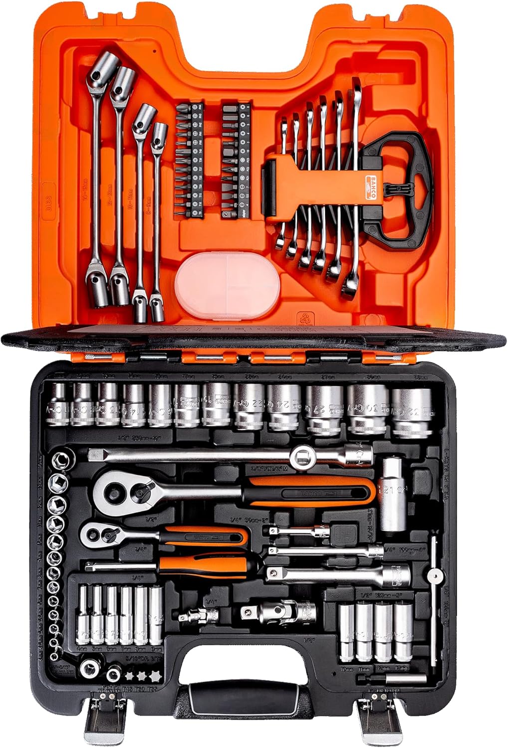 Juego de enchufes Bahco, 91 piezas, 1/4 y 1/2 unidad, S910
