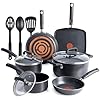 Juego de utensilios de cocina antiadherente T-fal Signature, 12 piezas, apto para horno y parrilla a 350F, ollas y sartenes, juego de cocina con sartén, cacerolas, sartén para saltear, horno holandés, plancha, cocina, hogar, lavavajillas, negro