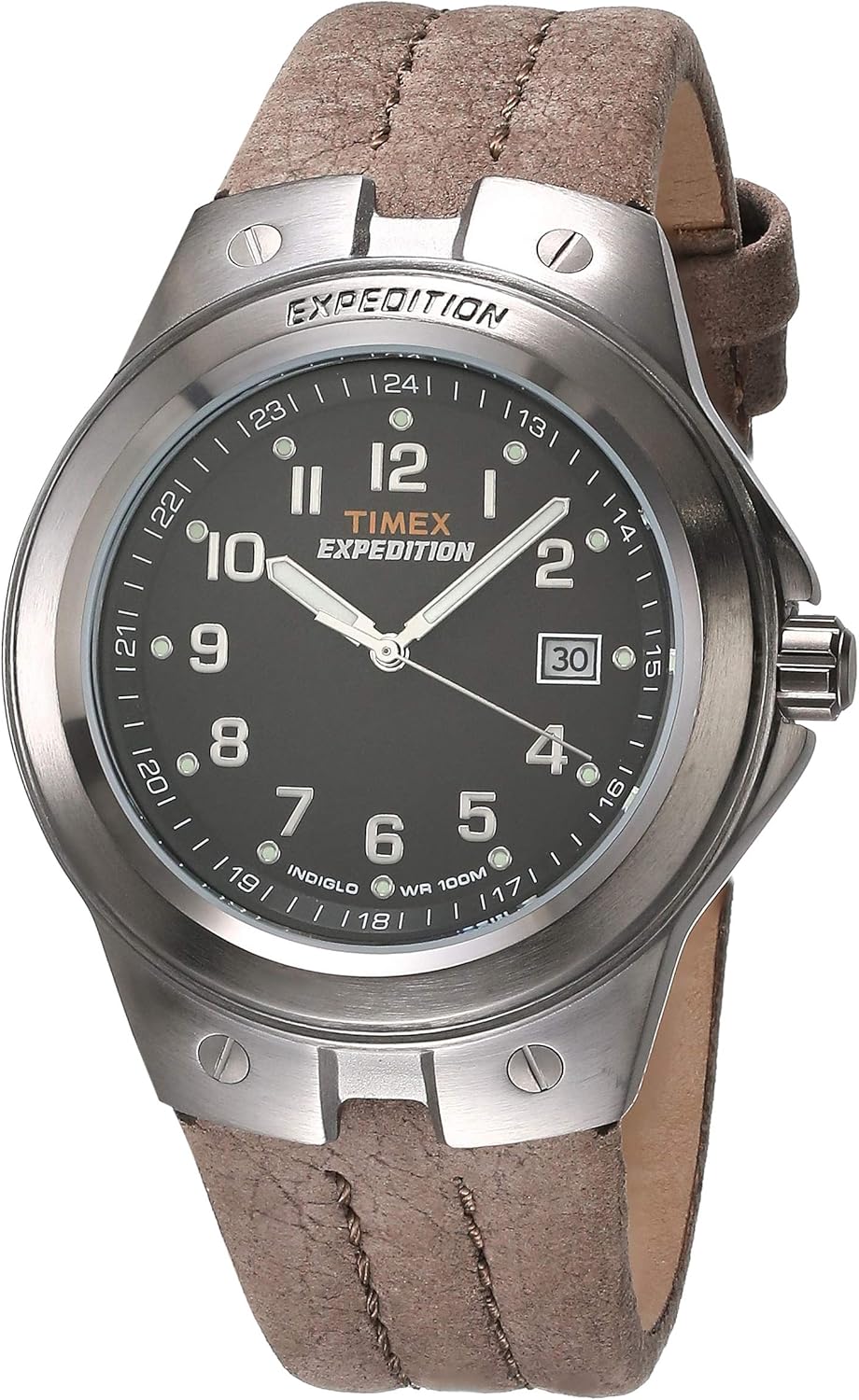 Reloj Analógico para Hombre Timex Expedition Metal Field 39mm | Correa de Cuero Natural Marrón | Retroiluminación INDIGLO y Manecillas Luminosas | 24 Horas | Función de Fecha Rápida | Reloj Rústico para Actividades al Aire Libre | Resistencia al Agua de 50M