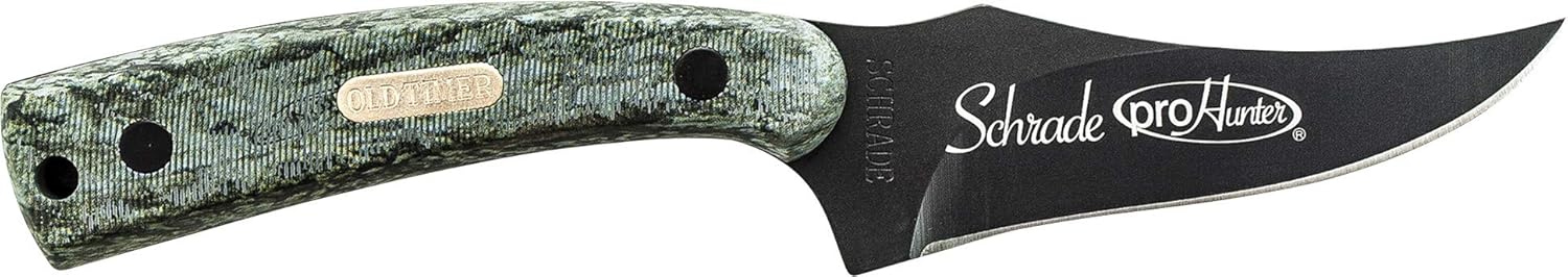 Old Timer 152OTBC Pro Hunter Camo Sharpfinger 7.1in Full Tang Fixed Blade Knife with 3.3in High Carbon SS Clip Point Skinner Blade, and Camo Handle for Hunting, Skinning, Field Dressing, and Outdoor