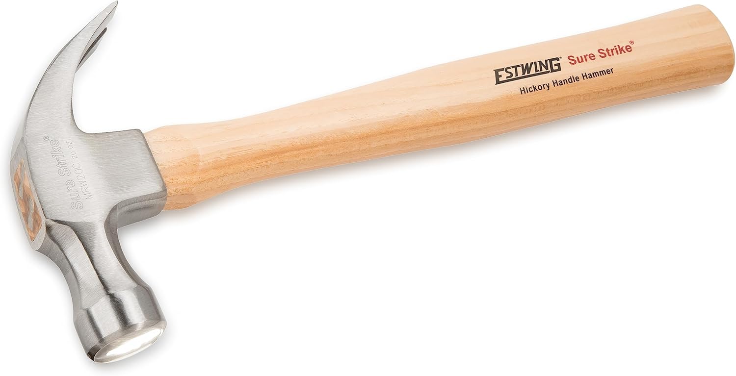 El martillo de clavos Sure Strike de 20 oz de Estwing tiene una cabeza de acero sólido forjado y una cara completamente pulida. Mango de nogal genuino curvado de primera calidad con construcción de triple cuña