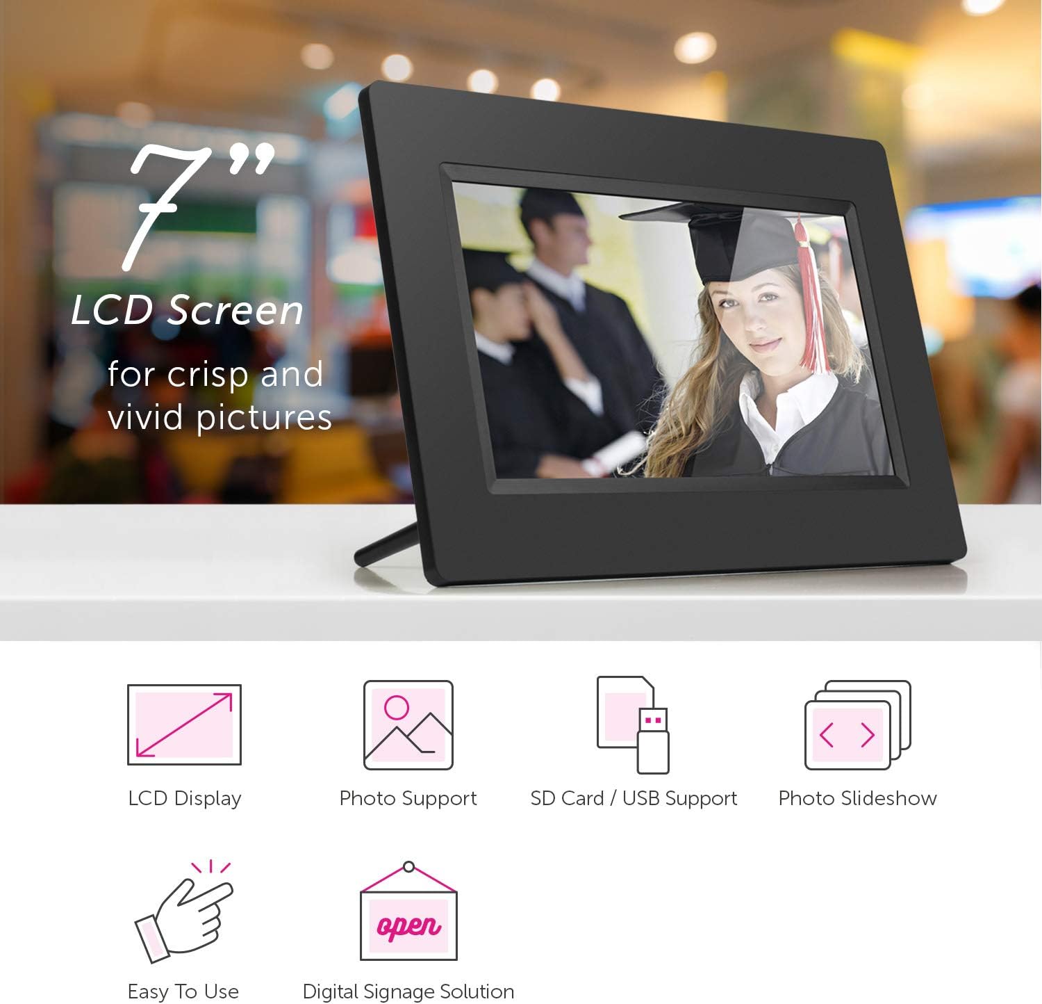 Marco de fotos digital LCD de 7 pulgadas de Aluratek con presentación automática de diapositivas usando USB y SD/SDHC (ADPF07SF) – Negro
