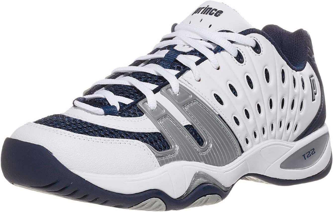 Prince's T22 tennis shoe builds on the superior durability and support of the classic T10 style, while adding improved ventilation. Its TPU forefoot straps also offer improved stability, its RASH toe cap provides abrasion protection, and its Shock Eraser midsole absorbs impact.