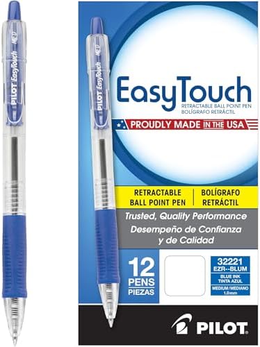 PILOT EasyTouch Plumas Bolígrafo Recargables y Retráctiles, Punta Media, Tinta Azul, Paquete de 12 (32221)