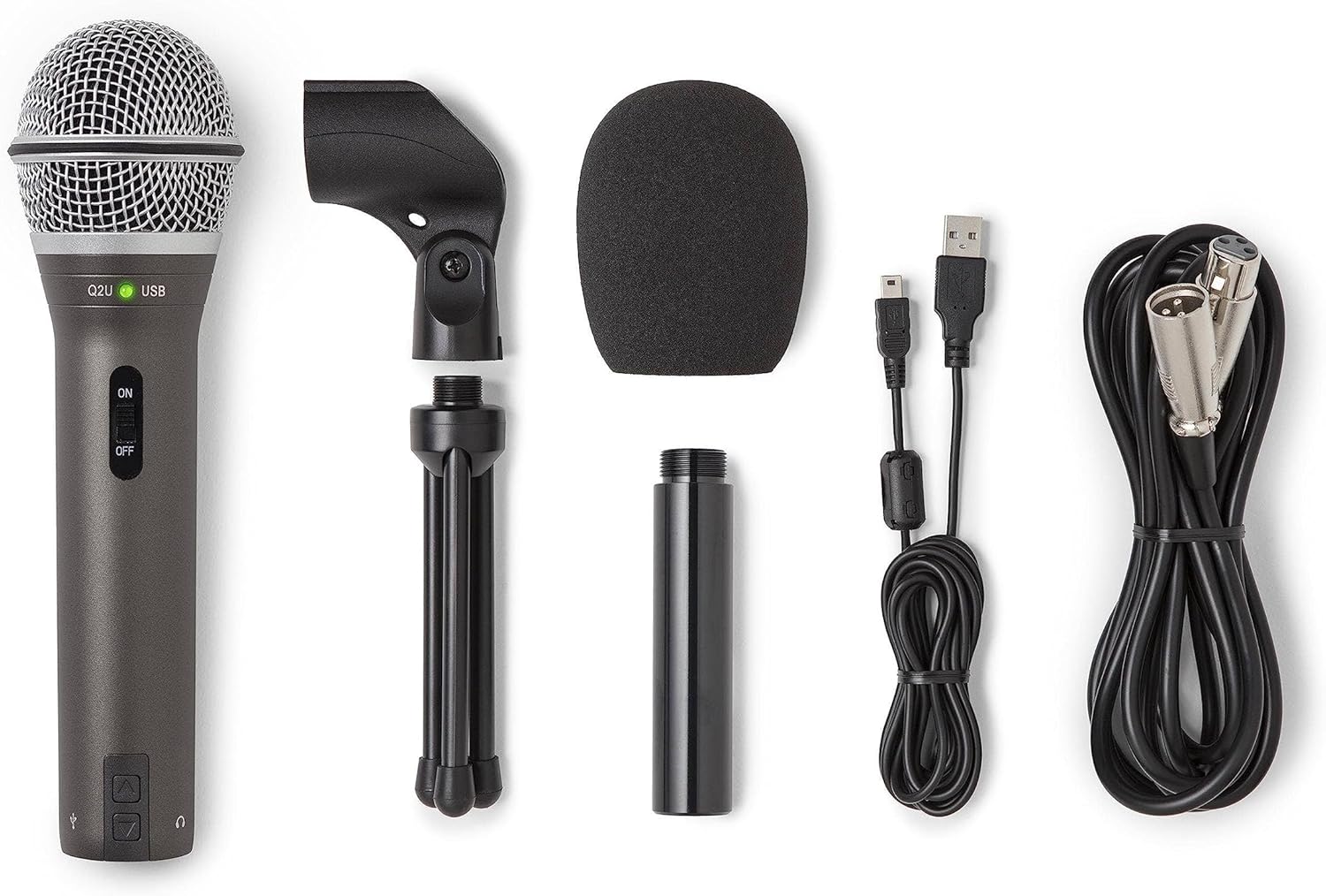 El Micrófono USB / XLR Samson Q2U combina la comodidad de la captura de audio digital y analógica en un solo micrófono dinámico. Con salidas XLR y USB, el Q2U es la primera opción para grabación en casa/estudio y móvil, así como para actuaciones en escenarios. El Q2U es fácil de configurar y supera a los micrófonos que cuestan más del doble. Viene con un clip para micrófono, soporte de trípode de escritorio con pieza de extensión, protector de viento, cable XLR y cable USB. . . Un paquete con todo lo que necesitas para comenzar a grabar directamente desde la caja.