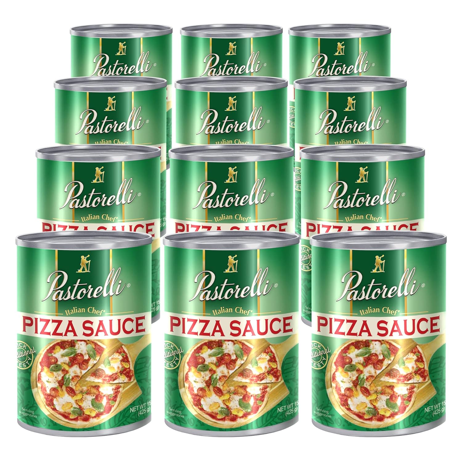 Pastorelli Pizza Sauce, Original Authentic Italian Pizza Sauce with Extra Virgin Olive Oil and Pecorino Romano Cheese Shredded, Since 1952 Family Pizza Sauce Recipe, 15 Ounce, Pack of 12