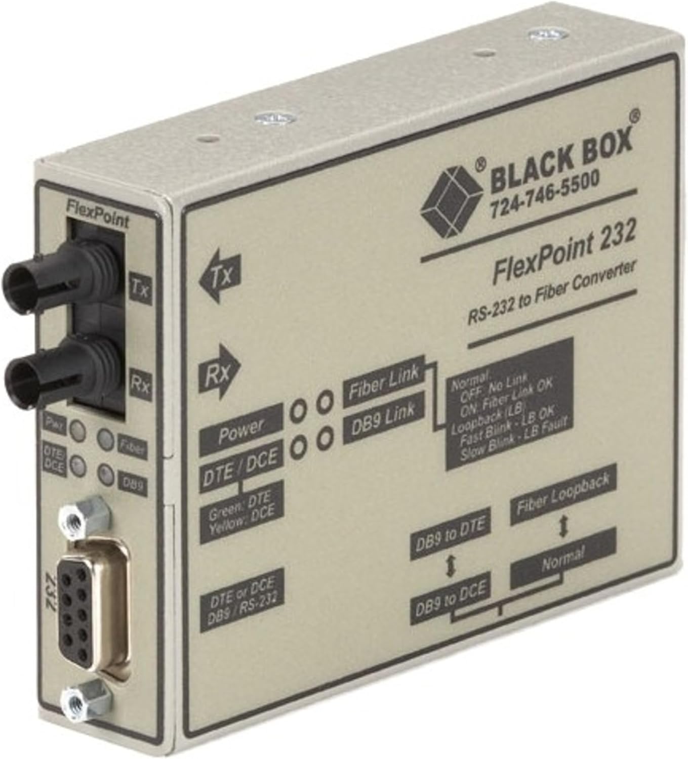 Black Box Flexpoint Modular Media Converter, Rs-232 To Fiber, Single-mode, 30 Km, St - 1 X St Ports - Duplexst Port - Single-mode - Internal, Standalone, Wall Mountable