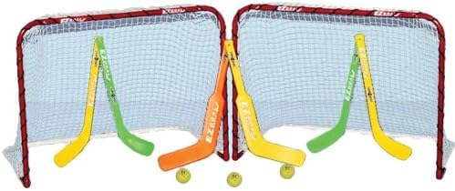 EZGoal Folding Mini Hockey Goal Set-2 Goals, Sticks & Balls
