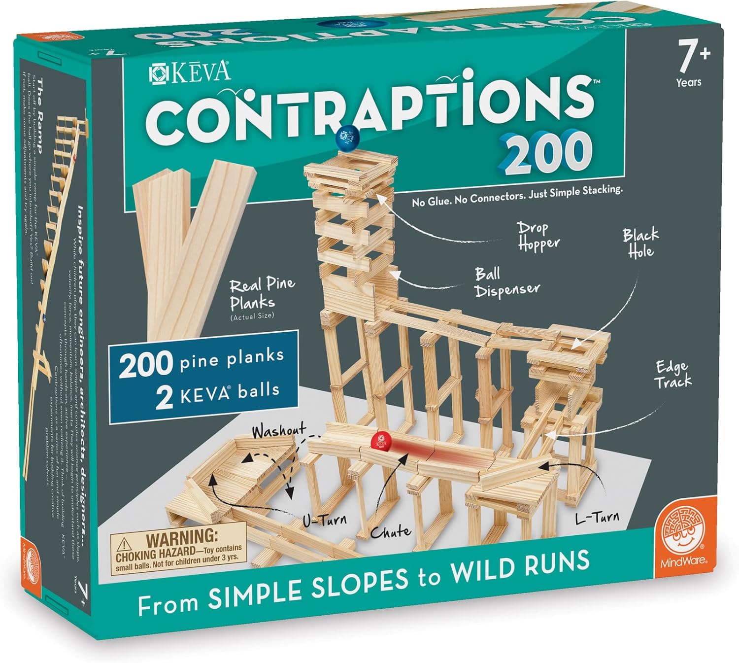 TOYS THAT TEACH: Our KEVA Contraptions are fantastic toys for teaching children to embrace their creativity and design engineering marvels. With 200 identical wooden planks crafted to be used as scaffolding, ramps, paths, and much more, this toy is perfect for any child looking to build and learn problem solving with basic physics. Who knows, in time you might have an architect on your hands!