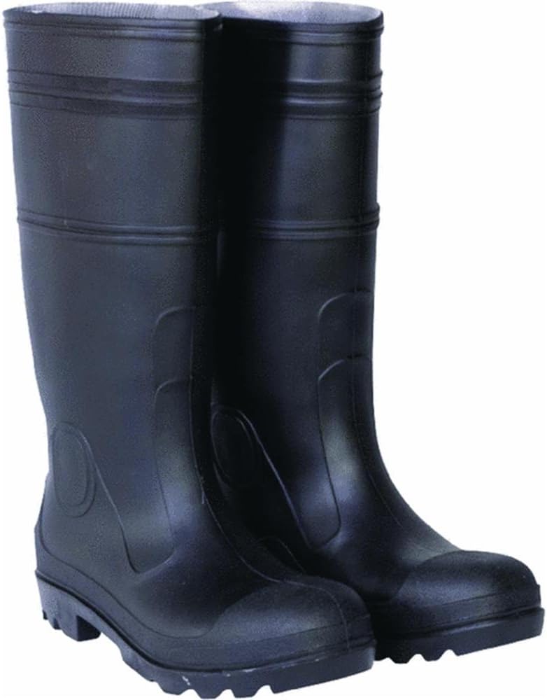 The steel-toed version of our R230, these black PVC rain boots have a durable cleated sole for improved traction and are sized to be worn with your thick socks.