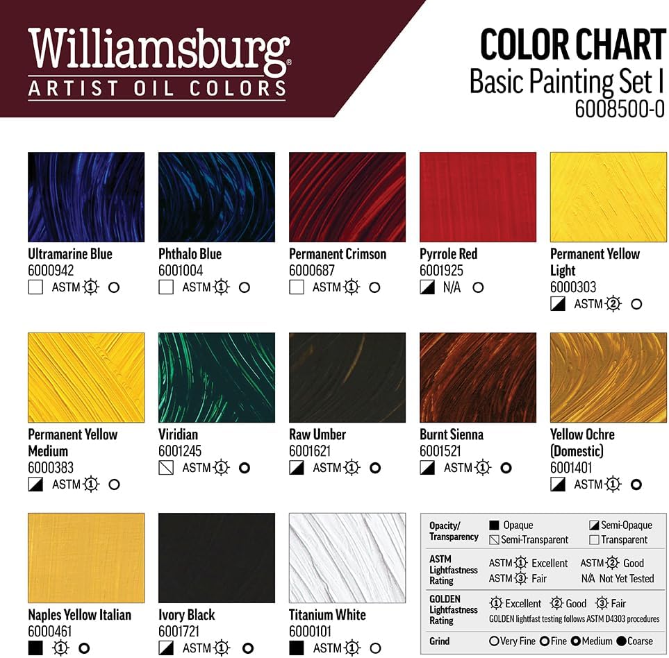 Williamsburg Artist Oil Colors by GOLDEN, Basic Painting Set I - 13 Colors