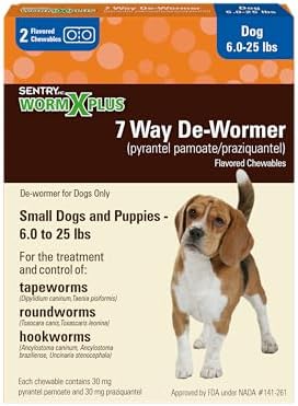 SENTRY HC Worm X Plus 7 Way De-Wormer (pyrantel pamoate/praziquantel), for Puppies and Small Dogs, 6-25 lbs, Chewable, 2 Count