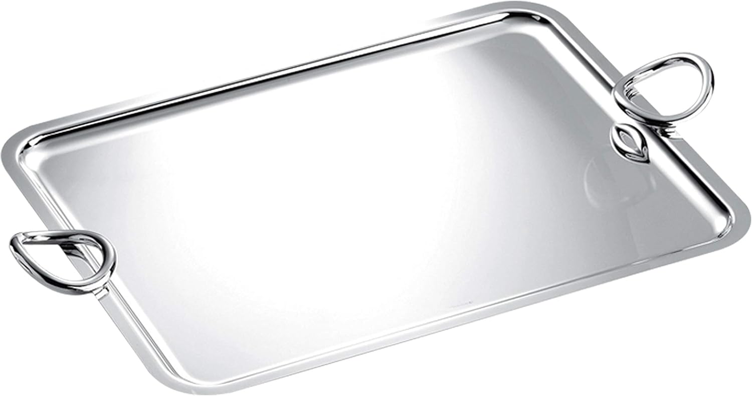 Dimensiones: 43 x 31 cm. Plato grande plateado de plata Christofle Vertigo con asas 04200300