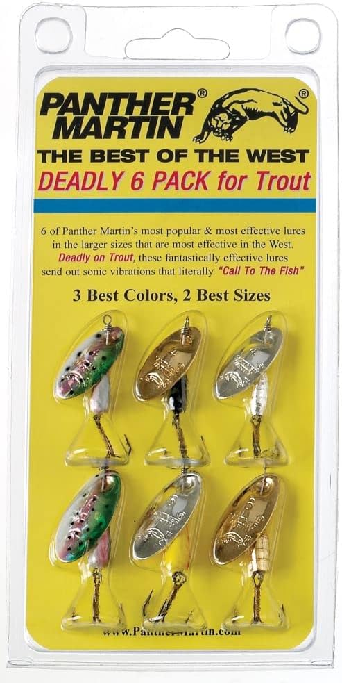 FOR CATCHING A VARIETY OF SPECIES: Panther Martin Deadly on trout, these fantastically effective lures send out sonic vibrations that literally "Call to the fish". 6 of our most popular & most effective lures in larger sizes. 3 Best Colors & 2 Best Sizes.