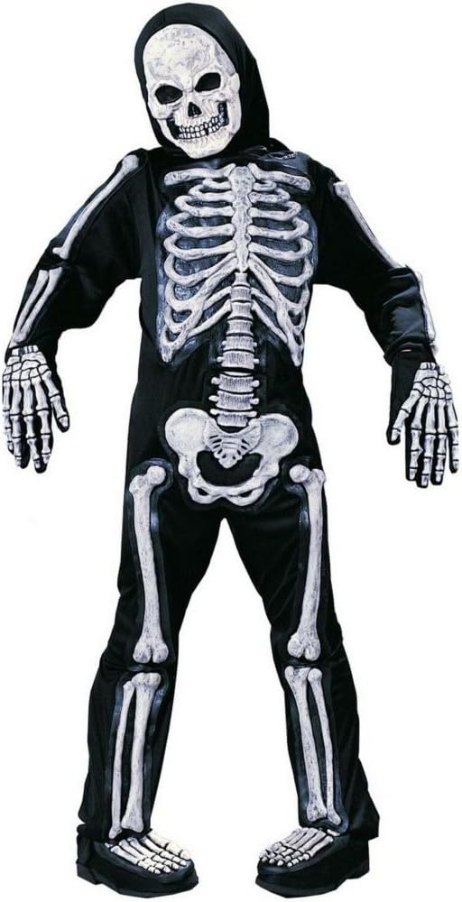 Saca a relucir la originalidad de tu hijo y deja que disfrute asustando a sus amigos y vecinos con el disfraz 3D de Skeleton para niños. Este disfraz incluye un mono negro con huesos blancos moldeados realistas, guantes tipo esqueleto y cubrebotas a juego y una máscara negra cubierta con una cara de calavera moldeada. Si tu hijo quiere asustar a sus amigos pero está cansado de los mismos disfraces de películas de terror de siempre, este disfraz es perfecto.