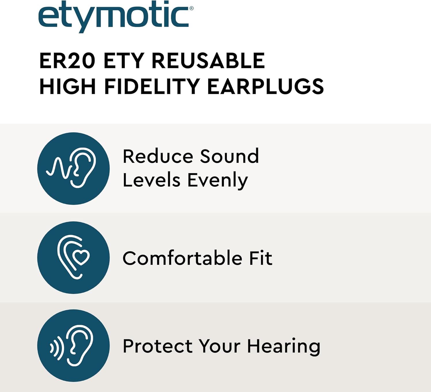 HIGH-FIDELITY EARPLUGS - ER20 earplugs deliver passive hearing protection designed to reduce sound levels and preserve speech clarity. They allow for clear communication and enjoyment of music at high volumes, such as at concerts and loud venues