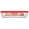 Pyrex 3-Cup Single Rectangular Glass Food Storage Container with Lid, Non-Toxic, BPA-Free Lid, Tempered Non-Pourous Glass, Microwave, Dishwasher, Freezer and Oven Safe, Red