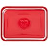 This small glass dish and secure red lid is ideal for storing fresh veggies, a salad, snacks and more. Durable, pure Pyrex glass stands up to the microwave and dishwasher use after use, and because it’s stain- and odor-resistant, it stays clean and preserves your food’s flavors. Includes (1) 3-Cup Rectangular Glass Storage Container with Lid.