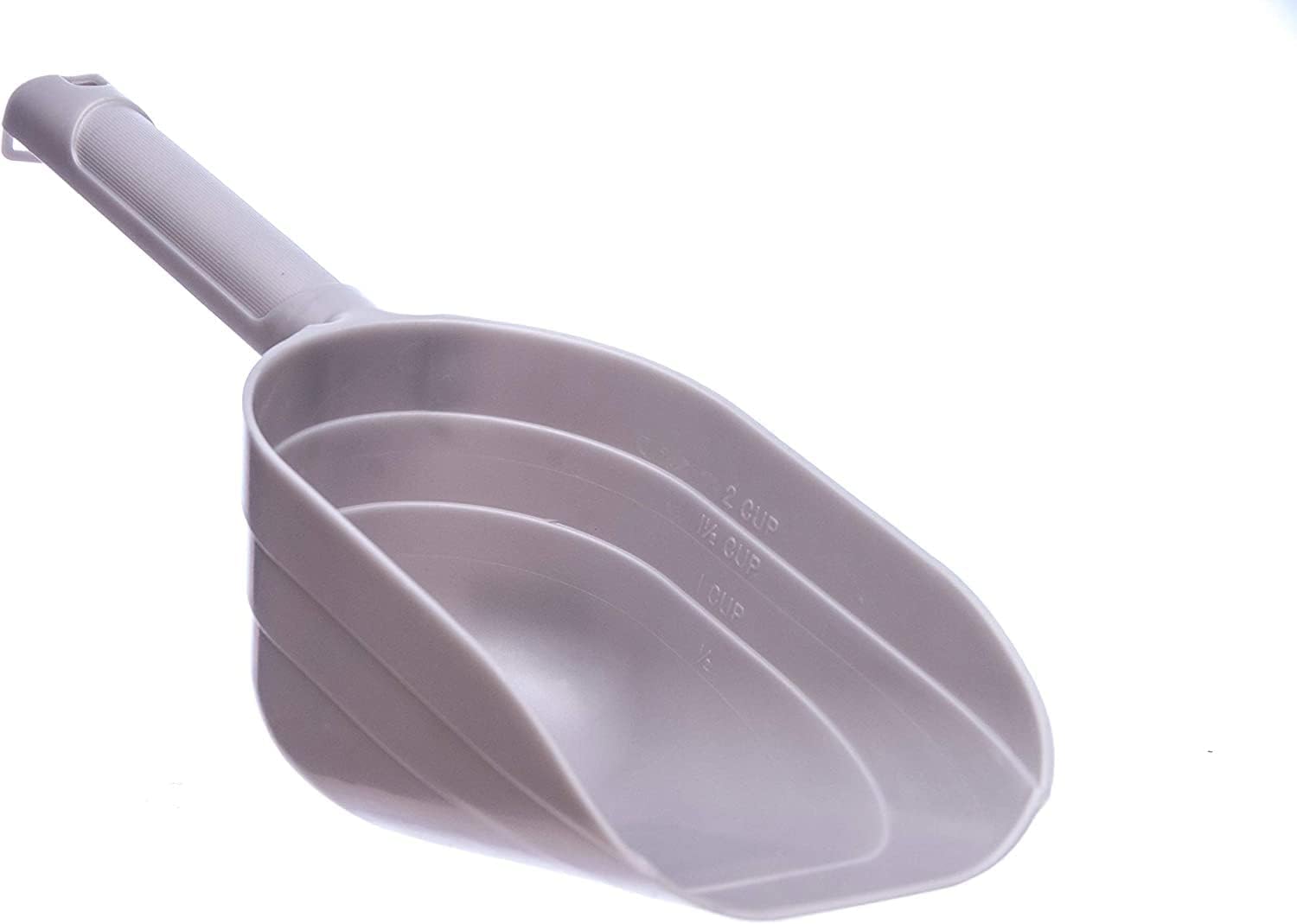 Measures While You Scoop: This 2 cup capacity pet food scoop includes measurement lines so you can portion servings without a separate measuring cup