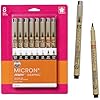 Lápices Fineliner SAKURA Pigma Micron - Lápices de Tinta Negra de Archivo - Para Escribir o Dibujar - Regalos de Fiesta para Artistas, Artesanos y Proyectos de Regalos DIY - Tamaños de Punta Surtidos - 8 Unidades