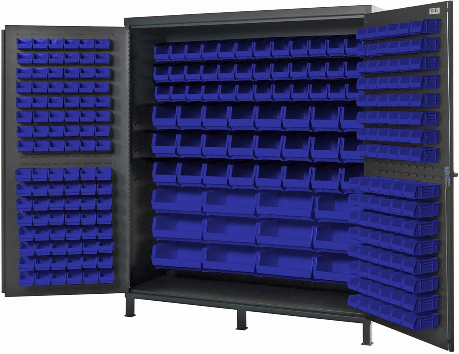 JUMBO GRAY STORAGE CABINET W/264 BLUE BINS