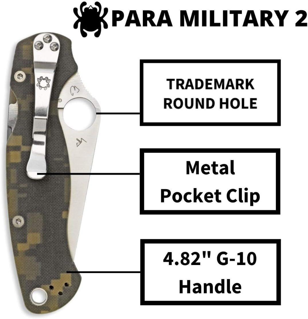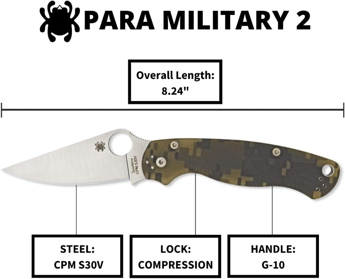 Spyderco Para Military 2 Signature Camo Knife with 3.42" CPM S45VN Steel Blade and Durable G-10 Handle - PlainEdge - C81GPCMO2