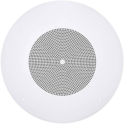 Altavoz de techo redondo, conductor de 8 pulgadas. Transformador multi-tapa de 5 vatios para líneas distribuidas de 100V, 70V y 25V. Alta sensibilidad de 96 dB para máximo nivel de sonido, incluso en configuraciones de baja tapa. Altavoz único (no un par).