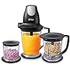 Includes: 450-Watt Power Pod, 48 oz. Pitcher, 16 oz. Chopper Bowl, and a 40 oz. Processor Bowl with Splash Guard and (2) Storage Lids