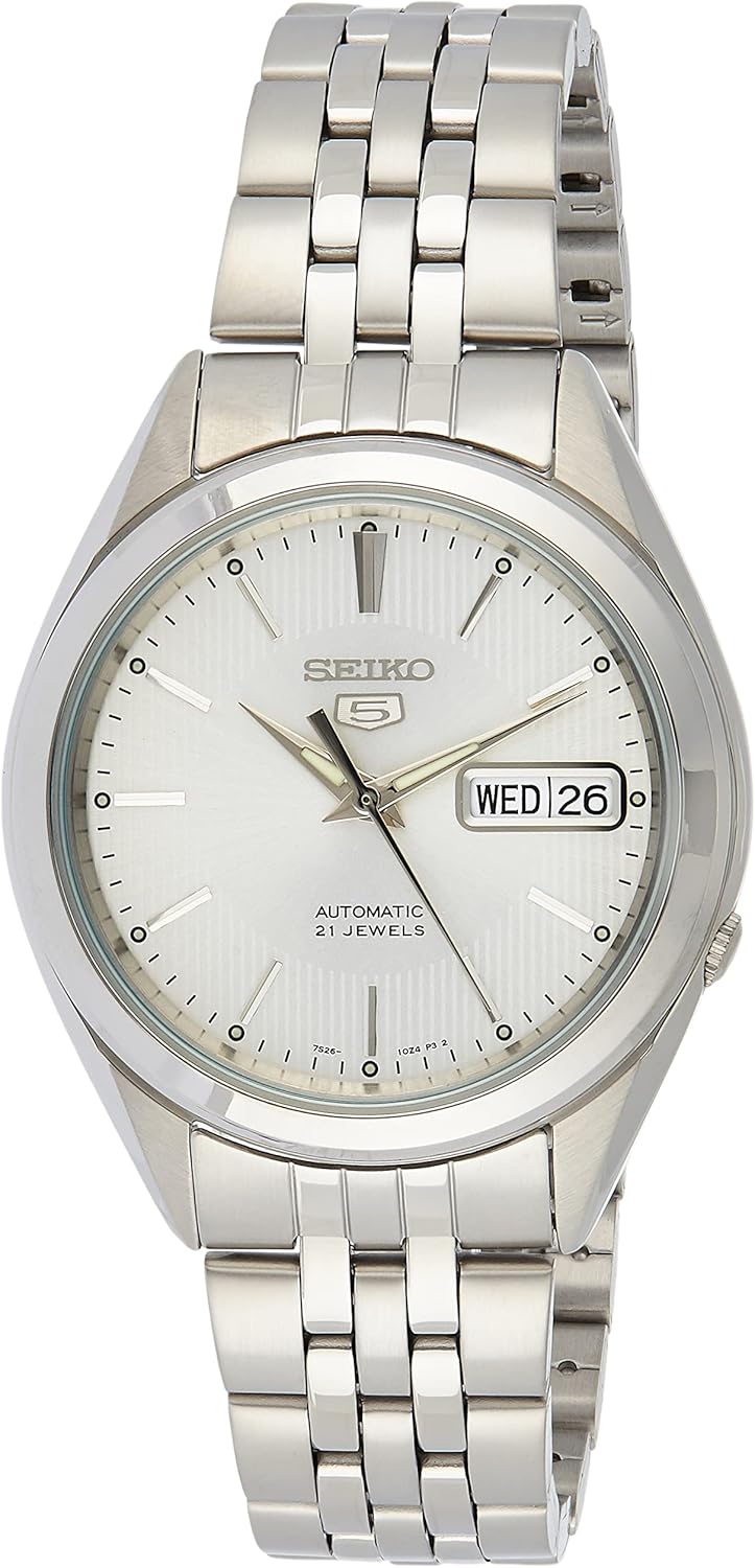 Reloj analógico SEIKO SNKL15 de acero inoxidable con esfera plateada para hombre