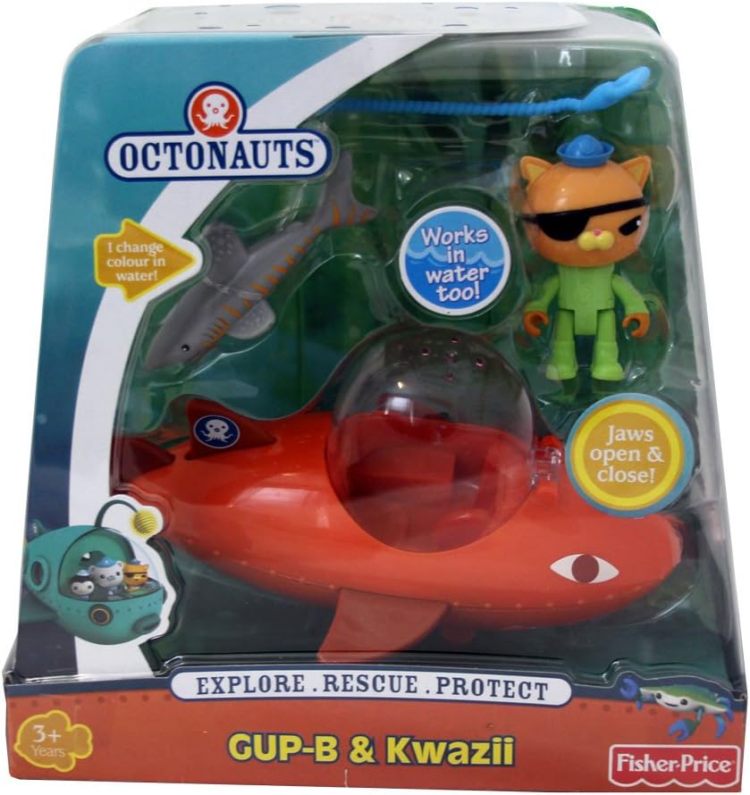 This speedy sub is Kwazii’s favorite vehicle for racing! The GUP-B features jaws that open and close when rolled across land and a water-squirting feature you can activate on your undersea missions! Includes a Kwazii figure, a shark whose stripes change color in warm water and a rescue rope too! Ages 3+