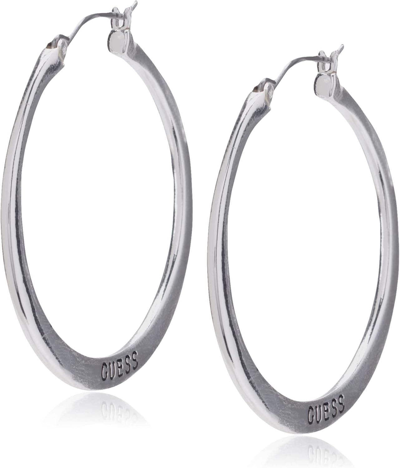 GUESS "Basic" Silver Flat Logo Hoop Earrings