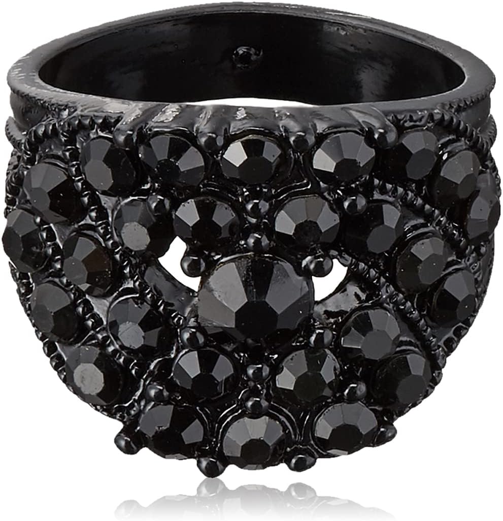 Make a bold fashion statement with this GUESS Black Gemstone Cluster Wide Band Statement Ring. This ring features a stunning design that is sure to turn heads and attract attention. The cluster of black gemstones set in a wide band creates a sophisticated and chic look that is perfect for any occasion. Made with high-quality materials, this ring is durable and long-lasting, ensuring that you can enjoy it for years to come. The ring is available in size 8, making it a perfect fit for many women. The beautiful GUESS-branded gift box makes it a perfect gift for your loved ones on any special occasion.
