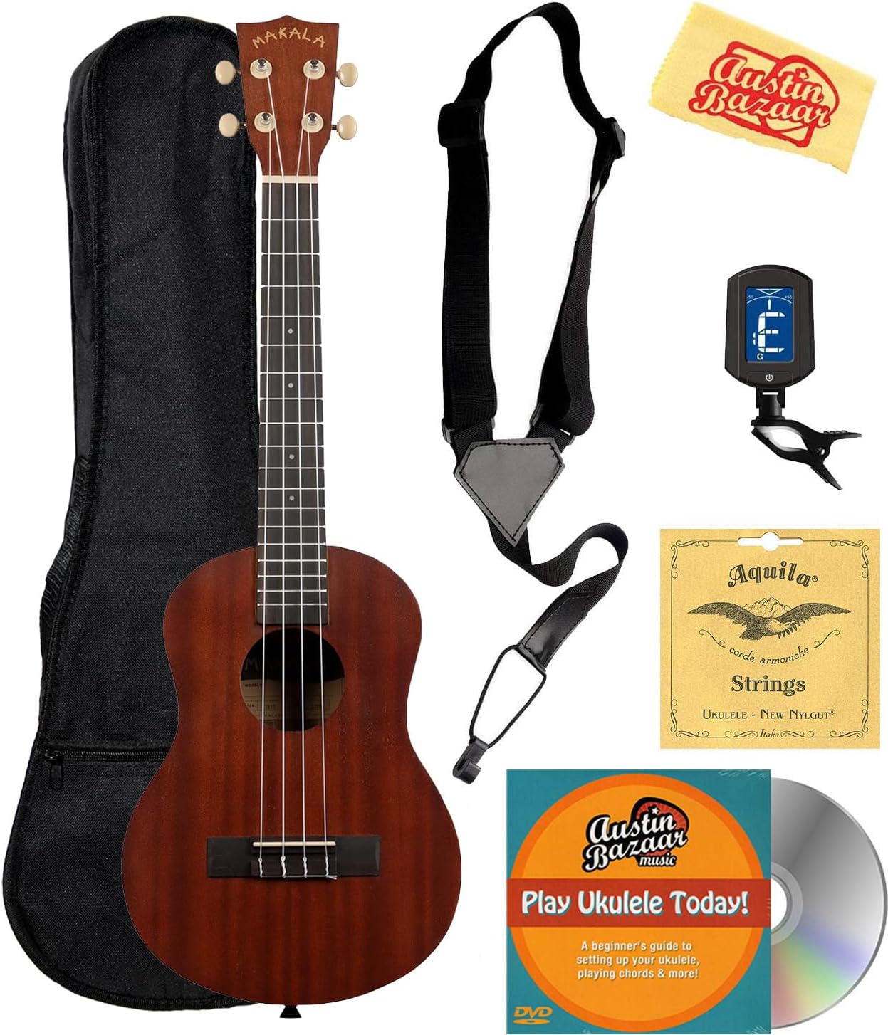 Kala MK-T Makala Tenor Ukulele Bundle with Gig Bag, Tuner, Strap, Aquila Strings, Online Lessons, Austin Bazaar Instructional DVD, and Polishing Cloth
