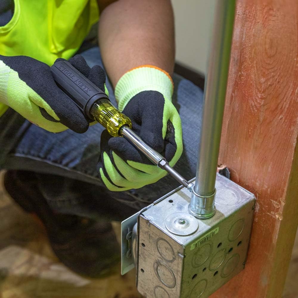 Our extended-reach multi-bit screwdrivers and nut drivers provide longer reach than traditional Klein multi-bit drivers for multiple common bits. The extra-long shafts also feature a small diameter for a more comfortable fit in tight spaces. Cushion-Grip handles provide superior torque and comfort. For more than 160 years, Klein Tools has manufactured premium-quality, professional-grade hand tools that deliver the performance, durability and precision needed to get the job done right. Our family of engineers, workers and craftsman continue to put six generations of expertise into every tool we create by using only the highest quality materials, superior workmanship, and keeping manufacturing as close to home as we can. Klein isn't just the name of our company, it's also our family name. And since we're an American company that's family-owned and family-run, you know you can count on us to be here tomorrow. Klein Tools doesn't just make great products, we make great products that stand up to the demands of the professionals who use them every day ... Since 1857.