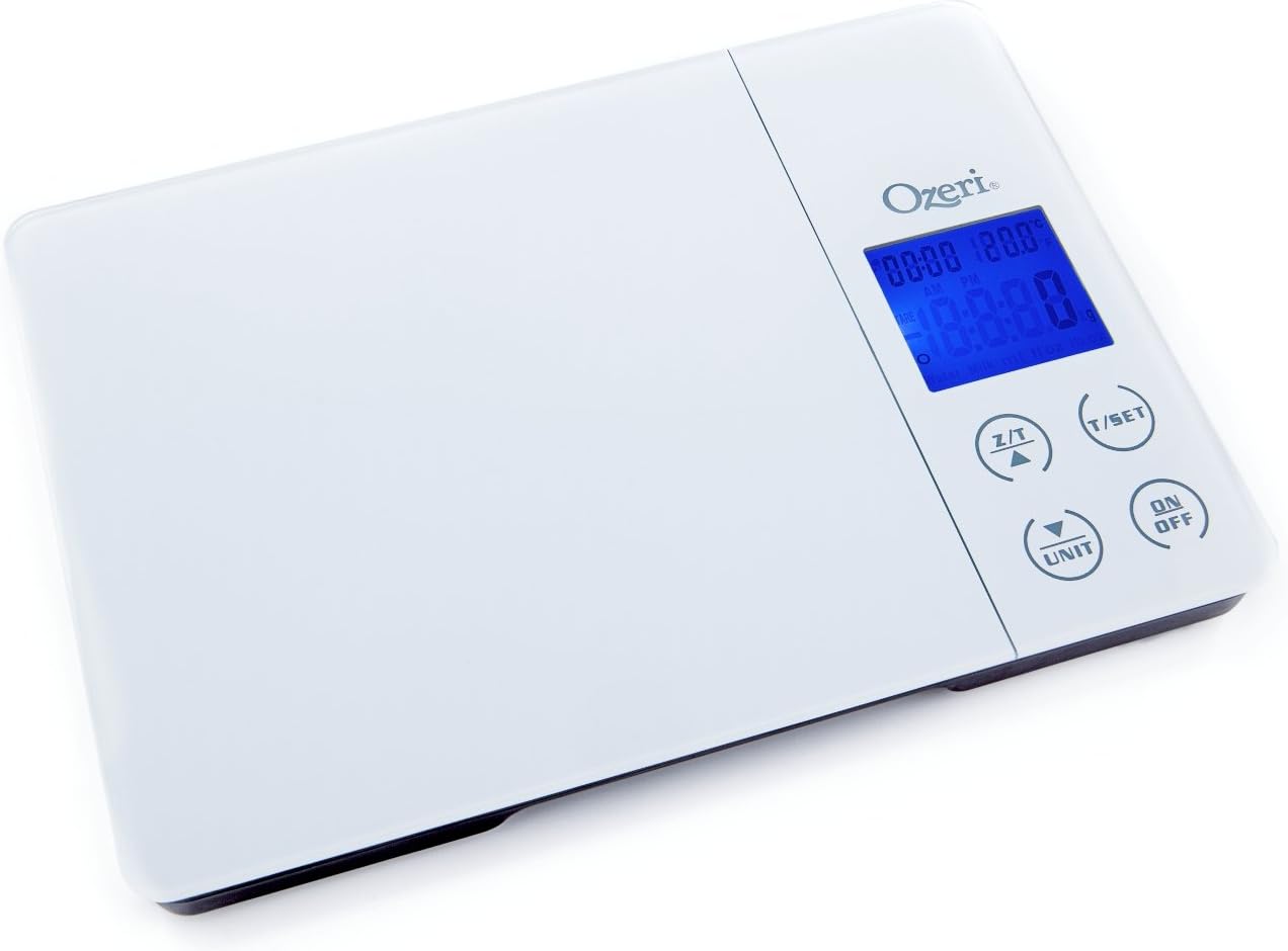 Ozeri Gourmet Digital Kitchen Scale in Tempered Glass - with Timer, Alarm and Temperature Display
