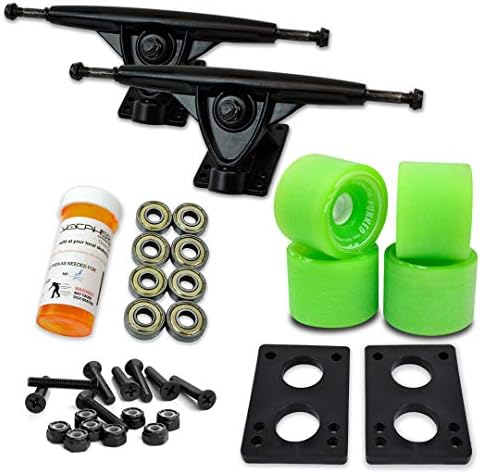 Yocaher Longboard Skateboard Trucks Wheels Combo Set 71mm Wheels + 7"/180mm Heavy Duty Aluminum Black Trucks, Bearing, Riser Pad, and Skateboard Longboard Cruiser Hardware