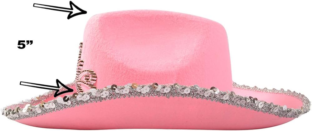 Lavar solo a mano PRINCESA DE RODEO: conviértete en una princesa de rodeo con este sombrero de vaquera rosa para niños TIARA ROSA LIGHTUP: añade el toque final a tu look de vaquera con esta glamurosa tiara rosa ESTILO RANCHERO DE TEXAS: esta tiara rosa de vaquero es un fantástico acabado para un disfraz occidental. Luce como un nativo de Texas con este fantástico sombrero DIVERSIÓN PARA CUMPLEAÑOS Y HALLOWEEN: perfecta para una fiesta del Lejano Oeste o un evento de temática campestre. Usa este sombrero para disfrazarte y hacer juegos de rol VAQUERA DE TAMAÑO INFANTIL: este sombrero de fieltro incluye pilas para iluminar la tiara parpadeante y tiene un cordón rosa para la barbilla. Este sombrero de tamaño infantil mide 22 pulgadas de circunferencia
