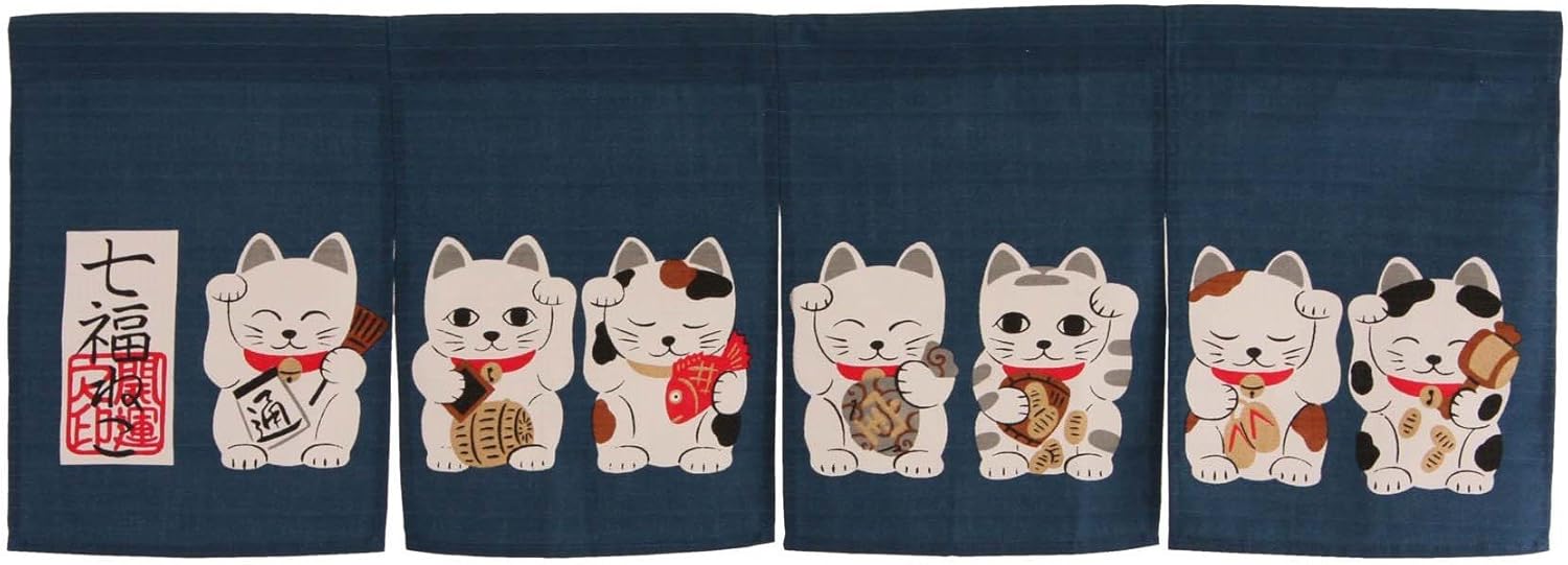 NARUMI 鸣海 Noren (Cortina Japonesa) Siete Gato/Maneki Neko 17-507 85×30cm de Japón