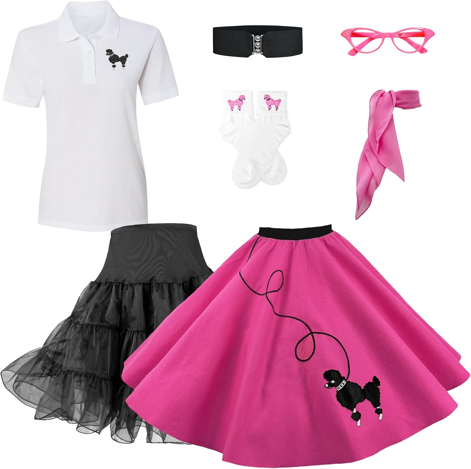 Hip Hop 50's Shop 1950s Poodle Skirt, Petticoat, Polo Shirt with Accessories, Adult 7 Piece Costume Set