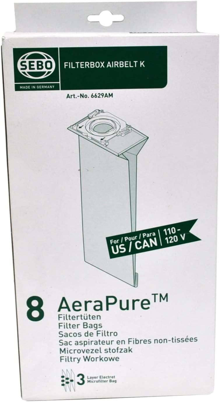 Experience the perfect fit and superior performance with these genuine Sebo vacuum cleaner bags, designed exclusively for Sebo K1, K1 Komfort, K1 Pet, K1 Eco, and K1 Premium models. Each pack contains 8 durable paper bags, ensuring a lightweight and efficient cleaning experience. These bags are not only compatible with your Sebo vacuum but also outperform generic alternatives, providing you with genuine Sebo quality.