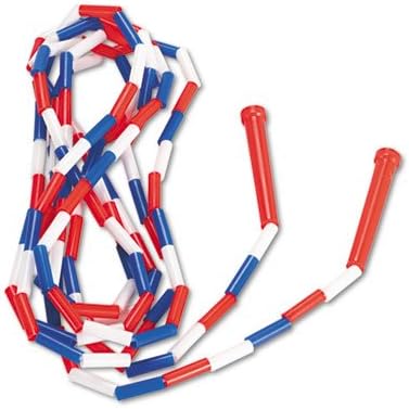 Plastic segments add weight to the rope which makes it easier to develop jump rope skills. Length: 16 ft; Rope Material: Plastic; Color(s): Blue/Red/White.
