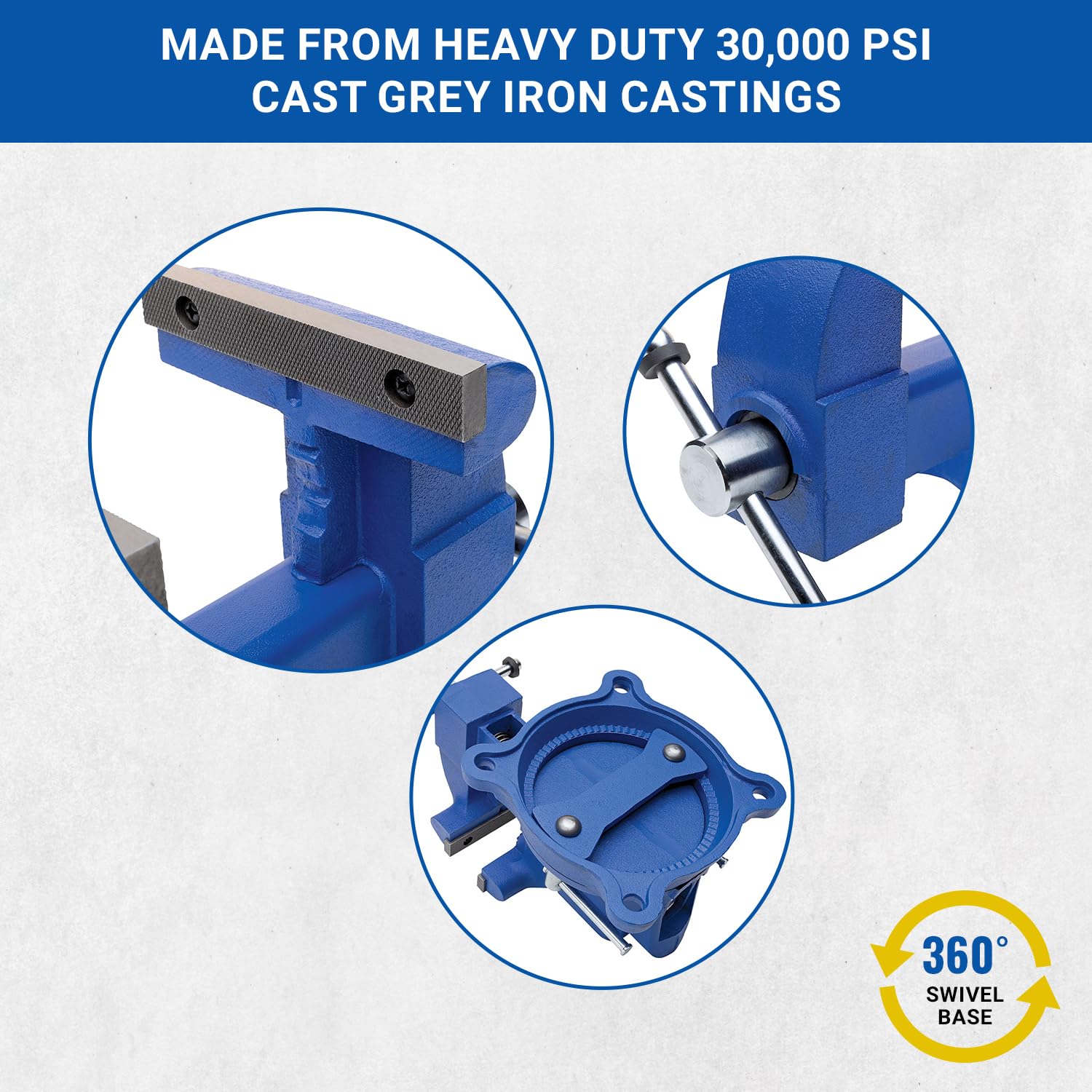 Yost Vises 460 Combination Vise | 6 Inch Jaw Width Heavy-Duty Utility Pipe and Bench Vise |Secure Grip with Swivel Base| Made with Cast Iron and Steel U Channel Bar | Blue