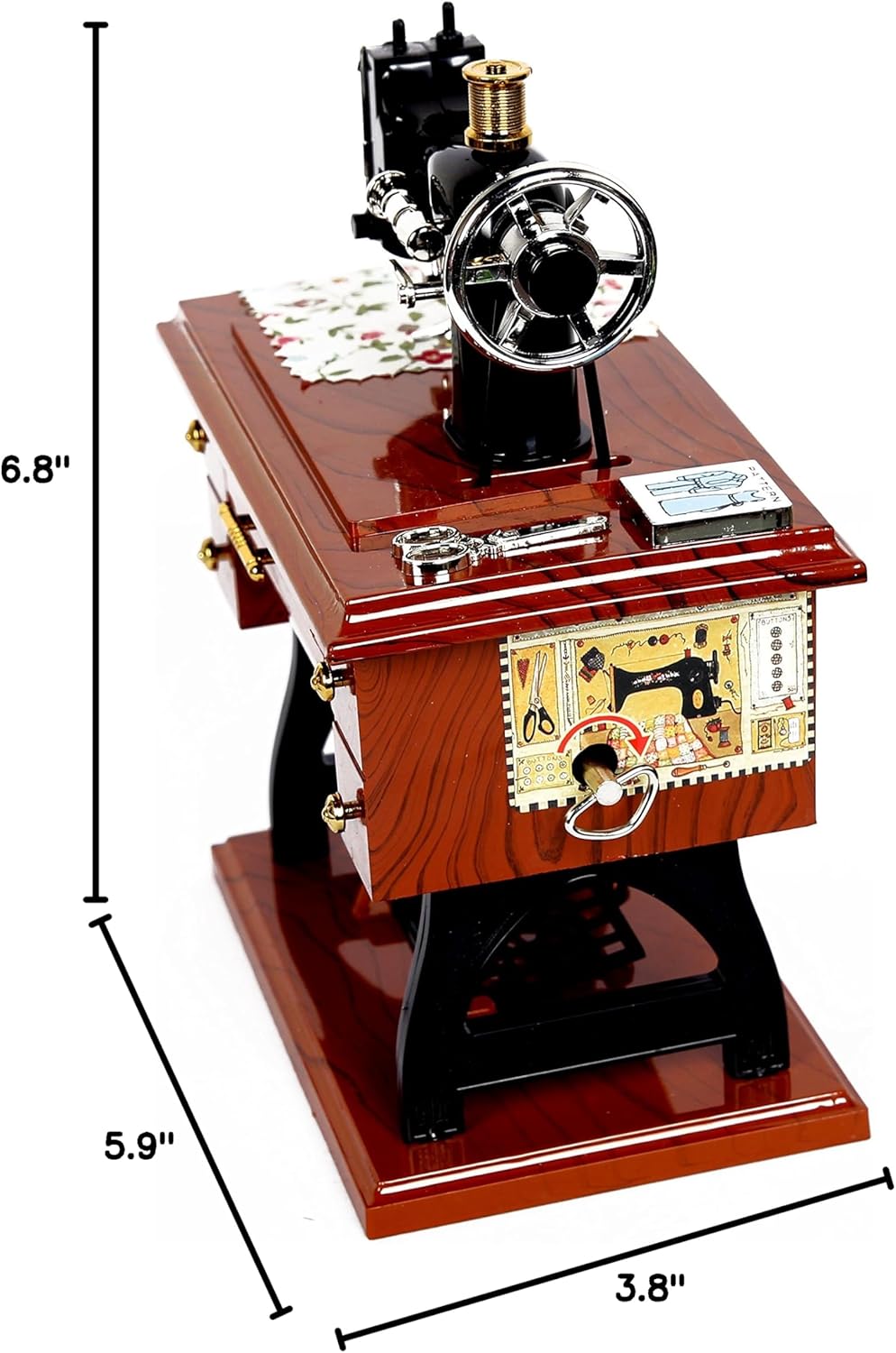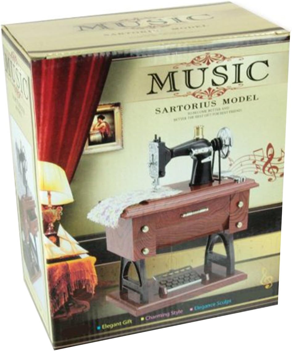 Artyea Vintage Mini Máquina de Coser de Plástico Caja de Música de Estilo Decoración de Mesa de Escritorio Regalo para Niños, marrón