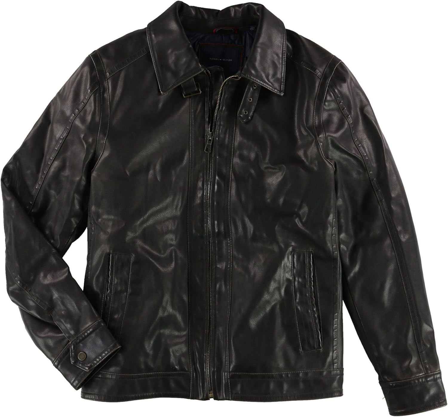 Tommy Hilfiger 152AU718 Chaqueta de Motociclista de Exterior para Mujeres China Chaqueta de Forro Polar con Cremallera Completa Cierre de Cremallera Ajuste Regular Sin Piel 100% Cloruro de Polivinilo Bolsillo Frontal Sólido Para Todas Las Estaciones Peso Medio Manga Larga Casual Moderna. Detalles adicionales: Chaqueta de cuero sintético casual y elegante||Cierre de cremallera completa en la parte delantera con hebilla en el cuello||Cuello puntiagudo y bolsillos frontales||Manga larga abotonada